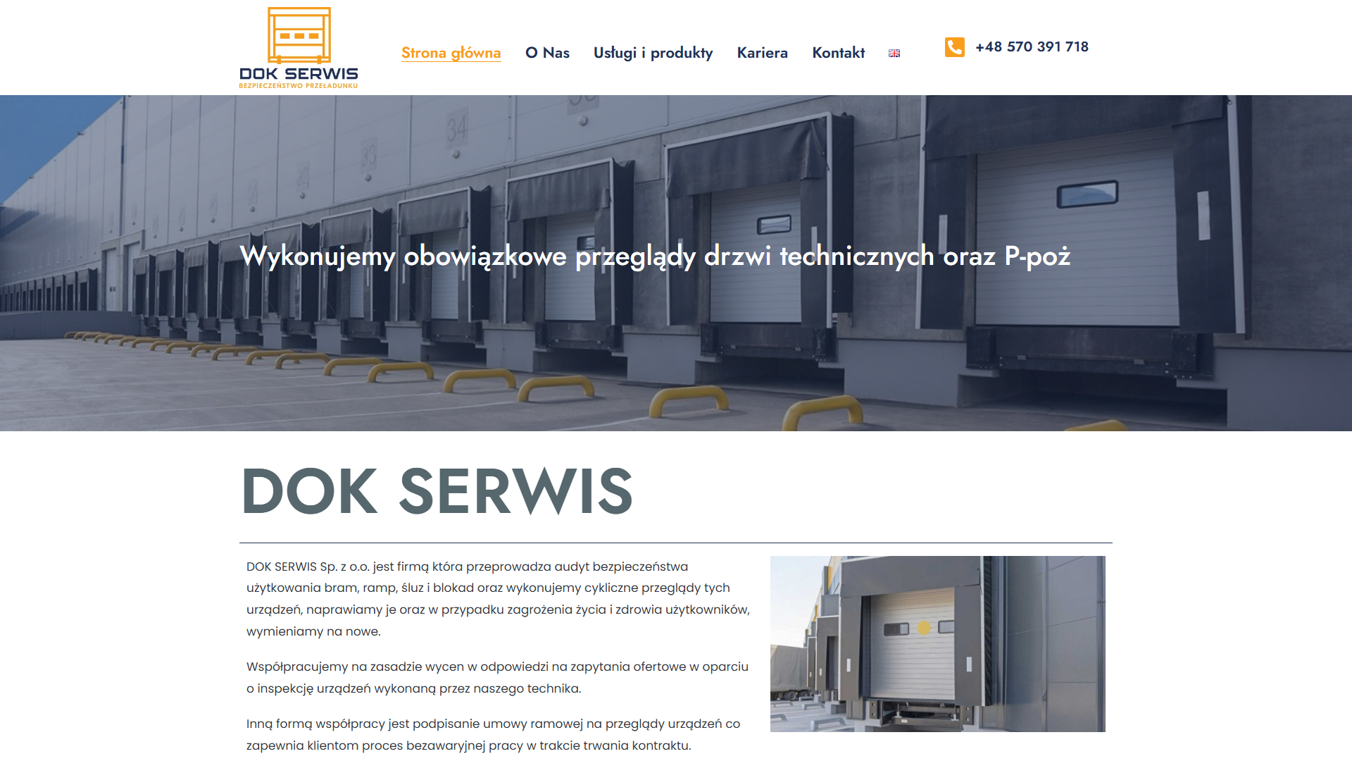 https://dokserwis.pl/Profesjonalny serwis bram i ramp przemysłowych – kompleksowa obsługa 24/7! Potrzebujesz fachowego serwisu bram segmentowych, rolowanych i szybkobieżnych? A może szukasz sprawdzonego partnera do montażu i naprawy ramp hydraulicznych, mostków przeładunkowych i doków załadunkowych? Oferujemy: • przeglądy techniczne i konserwację zgodnie z normami EN 13241, EN 16005, ISO 9001 • serwis awaryjny napędów 24 V DC, sterowników PLC, VSD (Siemens, Schneider, ABB) • wymianę uszczelnień, fotokomórek bezpieczeństwa, paneli sterujących, pilotów radiowych (Nice, FAAC, Hörmann) • modernizację automatyki bram (centralki sterujące, czujniki laserowe, barierki świetlne) • montaż zabezpieczeń BHP, oznakowania CE, certyfikaty TÜV, UL, NFPA Działamy na terenie całej Polski – Warszawa, Śląsk, Wielkopolska, Trójmiasto, Wrocław. Zaufaj doświadczeniu, szybki czas reakcji i gwarancja jakości! Zadzwoń już dziś: 800 123 456 lub napisz: [email protected] Serwis bram i ramp przemysłowych – niezawodność na każdym etapie użytkowania!