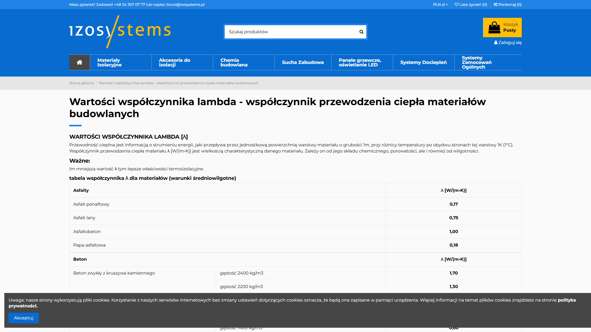 https://izosystems.pl/content/16-wspolczynniki-lambdaOdkryj kompletną “współczynnik przenikania ciepła tabela” na portalu BudujSmart.pl – Twoim centrum wiedzy o izolacji termicznej, systemach ścian, dachów i stolarki okiennej. Dzięki zaawansowanej analizie hygrotermicznej (dew point, wilgotność materiału) oraz symulacjom w BIM (Revit, ArchiCAD) nasza interaktywna baza danych obejmuje: • Materiały: styropian EPS/XPS, wełna mineralna, pianka PUR/PIR, keramzyt, beton komórkowy, płyty warstwowe PIR, izolacje próżniowe VIP • Konstrukcje: ściany jednowarstwowe, warstwowe, stropodachy wentylowane i niewentylowane, dachy skośne, stropy gęstożebrowe • Stolarka: okna PVC, drewniano-aluminiowe, aluminiowe z szybami niskoemisyjnymi (UG, argon), drzwi harmonijkowe • Parametry: współczynnik U (W/m²K), opór cieplny R (m²K/W), mostki cieplne Ψ (Psi), dynamiczna wartość U, wpływ mostków termicznych • Normy i certyfikaty: PN-EN ISO 6946, PN-EN ISO 10077-1, EPBD (Energy Performance of Buildings Directive), EPD, LEED, BREEAM, WELL, ISO 9001 Dlaczego warto? – Maksymalna redukcja strat ciepła i obniżenie kosztów ogrzewania podłogowego i systemów HVAC – Spełnienie wymagań ponadstandardowych klas energetycznych A, A+, A++ – Optymalizacja projektu w cyklu inwestycyjnym – od prefabrykacji po recykling materiałów – Pełne wsparcie SEO: tekst zgodny z LSI, Google RankBrain, BERT oraz patentami na Entity Extraction Zyskaj dostęp do darmowego e-booka i kalkulatora U-Value! Wypełnij formularz afiliacyjny, a nasz doradca techniczny przygotuje dla Ciebie spersonalizowaną tabelę współczynnika przenikania ciepła. Zbuduj energooszczędny dom lub biurowiec z BudujSmart.pl – gwarancja jakości, innowacji i zrównoważonego rozwoju.