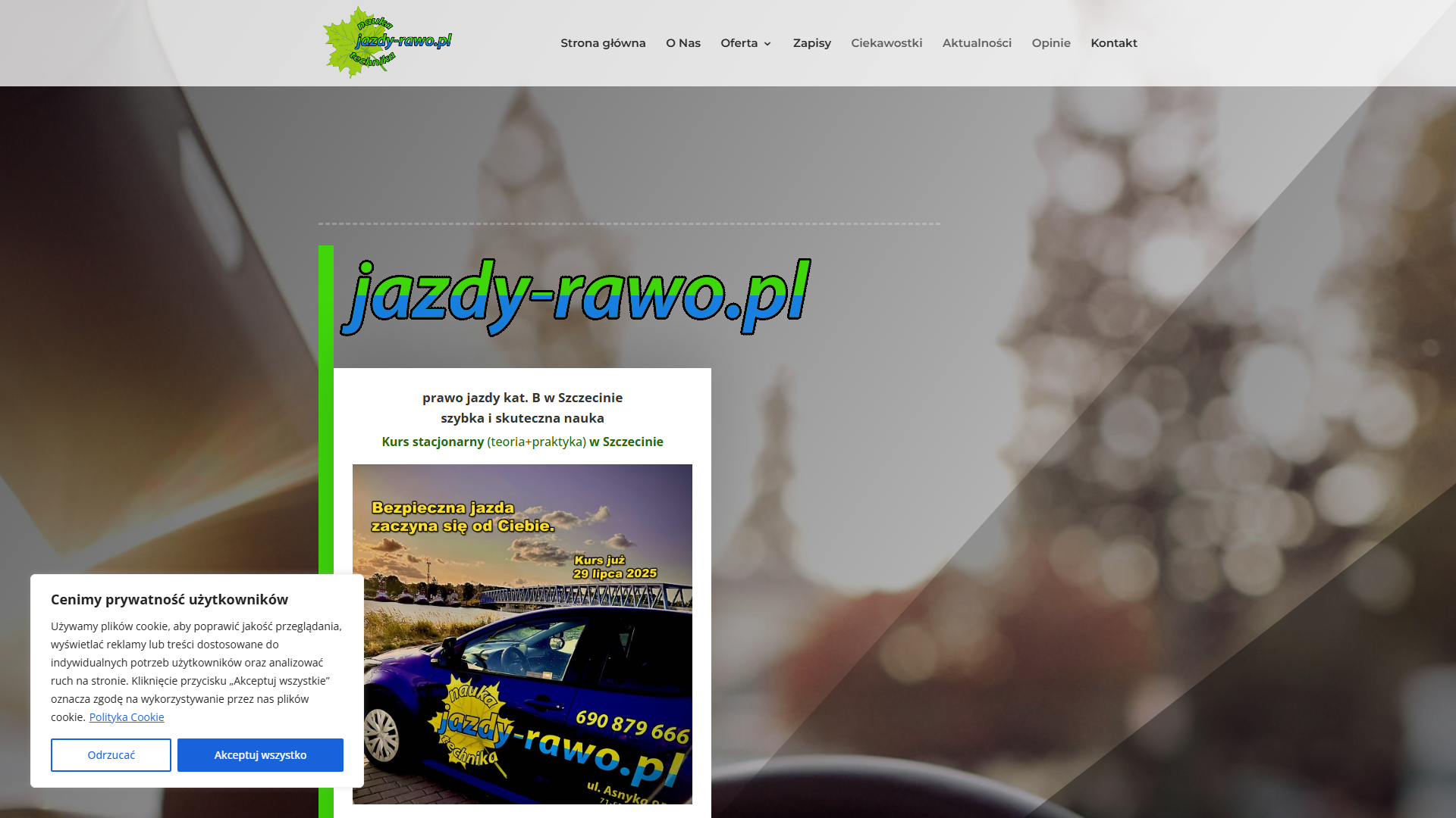 https://jazdy-rawo.pl/Nagłówek: Zdobądź prawo jazdy w Szczecinie z liderem szkoleń – Ośrodek Szkolenia Kierowców „DriveSzczecin”! Podtytuł: Kompleksowy kurs na prawo jazdy kat. B w Województwie Zachodniopomorskim – teoria i praktyka według standardów WORD Szczecin Tekst reklamowy: Marzysz o niezależności za kierownicą? Chcesz zdać egzamin państwowy (teoretyczny i praktyczny) za pierwszym razem? Wybierz OSK DriveSzczecin – profesjonalną szkołę nauki jazdy w Szczecinie, z siedzibą przy ul. Kraszewskiego 18, niedaleko WORD Szczecin. Nasz ośrodek to gwarancja: • Doświadczonych instruktorów – egzaminatorów z uprawnieniami Ministerstwa Infrastruktury, certyfikowanych przez PZMOT. • Nowoczesnej floty samochodów – Hyundai i20, Toyota Yaris, automaty i manual, klimatyzacja, ABS, ESP. • Interaktywnych zajęć teoretycznych – e-learning, testy online wzorowane na arkuszach WORD, aplikacja mobilna z pytaniami egzaminacyjnymi. • Pełnego przygotowania praktycznego – manewry na placu manewrowym, jazda miejska (ul. Bogurodzicy, ul. Krzywoustego), autostrada A6, jazda defensywna i ekonomiczna. • Dodatkowych modułów – kurs pierwszej pomocy (certyfikat PCK), symulator VR, szkolenie z obsługi karty kierowcy i tachografu. Co nas wyróżnia: – Program zgodny z najnowszą Ustawą Prawo o Ruchu Drogowym i wytycznymi Głównego Inspektoratu Transportu Drogowego. – Wysoka zdawalność w WORD Szczecin i Koszalin. – Elastyczny harmonogram: zajęcia poranne, popołudniowe i weekendowe. – Atrakcyjne pakiety: Standard (30h teorii + 30h jazd), Premium (40h + symulator), VIP (wizualizacja trasy egzaminacyjnej). Dodatkowe atuty: • Możliwość płatności ratalnej – system ratalny 0% • Bezpłatne materiały szkoleniowe – e-book, filmy instruktażowe, mapy manewrów • Profesjonalne doradztwo – wsparcie w rejestracji do WORD, wypełnianie wniosku o prawo jazdy Call to Action: Zapewnij sobie sukces za pierwszym podejściem! Zapisz się już dziś online na stronie: www.driveszczecin.pl lub zadzwoń: 91 458 22 33. OSK DriveSzczecin – Twoja droga do samodzielnej jazdy!