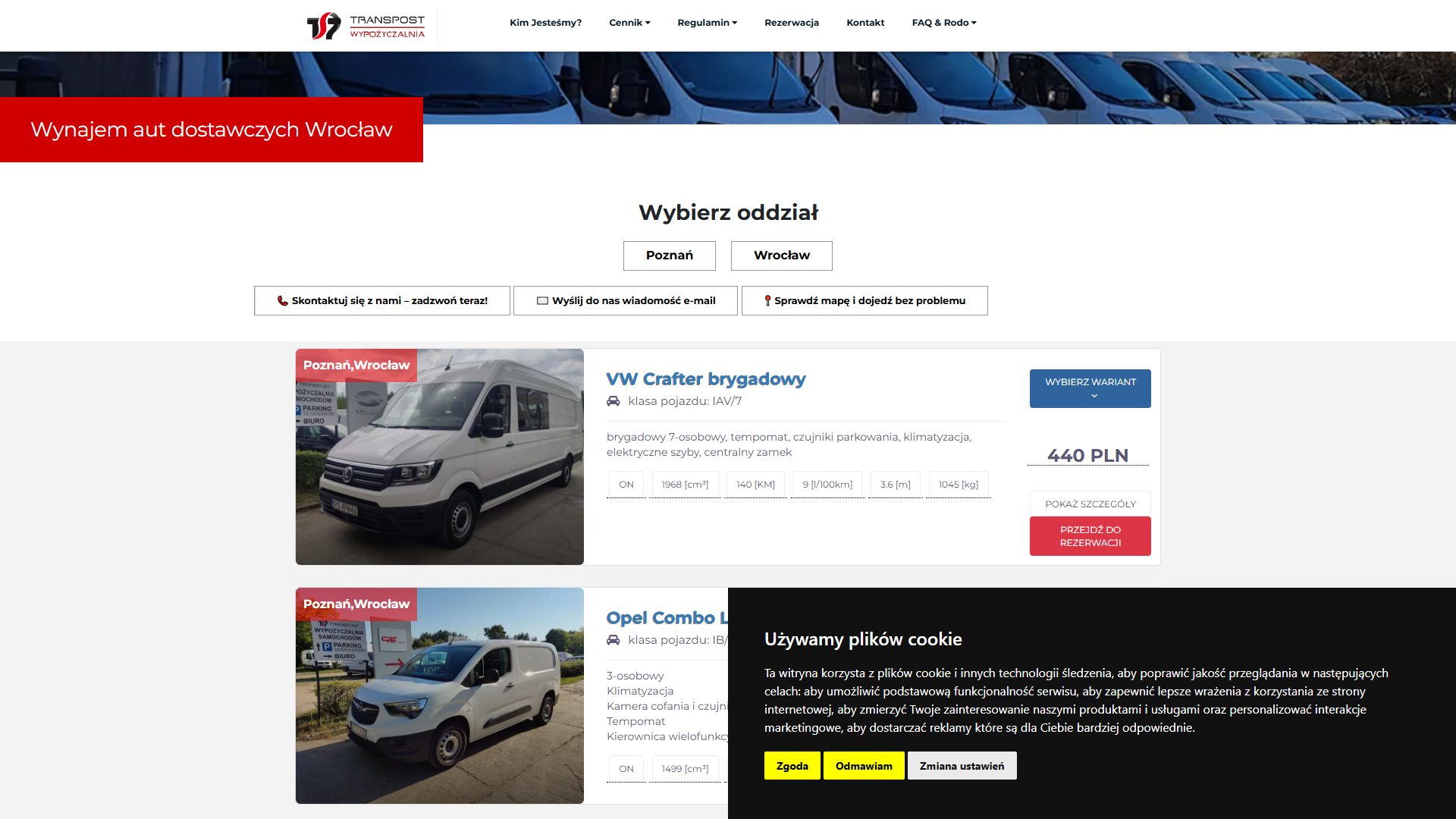 https://wypozyczalnia.transpost.com.pl/wypozyczalnia-samochodow-dostawczych-wroclawWynajem samochodów dostawczych Wrocław – flota Fiat Ducato, Renault Master, Ford Transit i Mercedes Sprinter w najlepszych cenach! Szukasz sprawdzonej wypożyczalni aut dostawczych we Wrocławiu i na Dolnym Śląsku? Nasza firma oferuje kompleksowe usługi wynajmu samochodów dostawczych (van, auto do przeprowadzki, bus 3-10 m³) zlokalizowaną przy węźle autostrady A4/A8 („Wrocław Fabryczna”, „Wrocław Stadion”), tuż obok Portu Lotniczego Wrocław–Strachowice. Obsługujemy: • Wrocław (Śródmieście, Krzyki, Psie Pole, Fabryczna, Stare Miasto) • Dolny Śląsk (Oława, Oleśnica, Świdnica, Legnica, Głogów) Dlaczego warto wybrać naszą wypożyczalnię? • Największy wybór samochodów dostawczych: Fiat Ducato Maxi (17 m³), Renault Master L2H2 (14 m³), Ford Transit L3H2 (12 m³), Mercedes Sprinter 313 CDI (9 m³), VW Crafter. • Bezlimitny przebieg i elastyczne warunki: wynajem krótko- i długoterminowy, leasing operacyjny i wynajem z OC/AC/NNW. • Bezpieczny transport – wszystkie auta z monitoringiem GPS, klimatyzacją, czujnikami cofania i regularnym przeglądem serwisowym. • Wynajem od ręki – minimum formalności, kaucja zwrotna, możliwość rezerwacji online 24/7. • Usługi dodatkowe: wyposażenie MOVO (pas transportowy, wózek do przeprowadzki, mata ochronna), pomoc drogowa i assistance na terenie Polski i UE. Nasze atuty: • 15-letnie doświadczenie w branży TSL i usługach przeprowadzek – biura, magazyny, sklepy internetowe, transport palet, ładunków ADR. • Lokalizacja pod Wrocławskim Węzłem Komunikacyjnym (blisko Dworca Głównego, Centrum Kongresowego, Stadionu Miejskiego). • Współpraca z klientami indywidualnymi i firmami – usługi door-to-door, B2B, preferencyjne stawki dla stałych partnerów. Zarezerwuj online już dziś i skorzystaj z promocji: 10% rabatu na wynajem powyżej 3 dni! Kliknij “Sprawdź ofertę” i zamów samochód dostawczy we Wrocławiu bez wychodzenia z domu. Gwarantujemy szybki wynajem, profesjonalną obsługę oraz pełne wsparcie logistyczne. Wypożyczalnia AutoCargo Wrocław – Twój partner w transporcie i przeprowadzkach na terenie Wrocławia i całego Dolnego Śląska!
